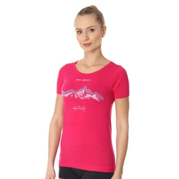 Koszulka Damska Z Krótkim Rękawem Termoaktywna Outdoor Wool Malinowa Góry 1 (SS1272W)