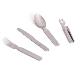 Military cutlery is a set of tools and accessories to help prepare and consume meals while traveling. The traditional set includes a can opener, knife, fork and spoon. The design is usually folded or closed in a practical case, making it easy to store and transport. Some sets include additional elements such as a corkscrew, spatula or cutting board. Travel cutlery must be light, compact and easy to carry.