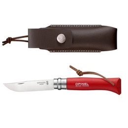 Nóż Składany OPINEL INOX Colorama N°8 Rzemień Red + Etui (001890)