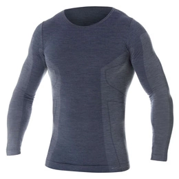 Koszulka Męska Z Długim Rękawem Comfort Wool Merino Brubeck Ciemny Jeans (LS11600)