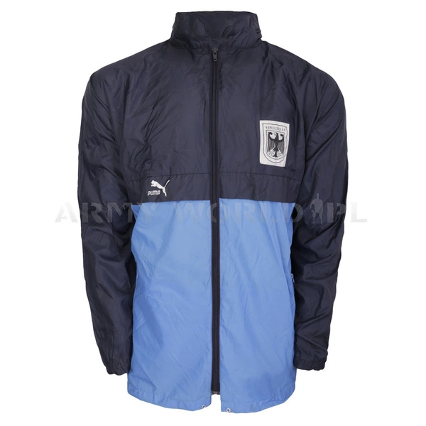 Oryginalna kurtka wiatrówka firmy Puma lub Adidas, produkowana na potrzeby niemieckiej armii Bundeswehr. Odzież posiada właściwości nieprzepuszczające wiatru.