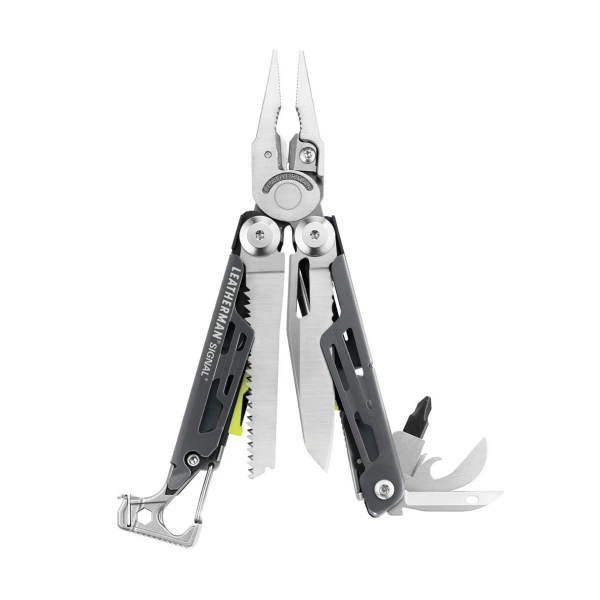 Idealnie dopasowany do każdej przygody, Signal® łączy w sobie 19 przydatnych narzędzi w kompaktowym rozmiarze. To multinarzędzie jest gotowe na wyprawy miłośników survivalu.   gwizdkowi awaryjnemu. Powłoka DLC na stali nierdzewnej zwiększa odporność na korozję i zmniejsza niepożądane w niektórych przypadkach zarysowania.