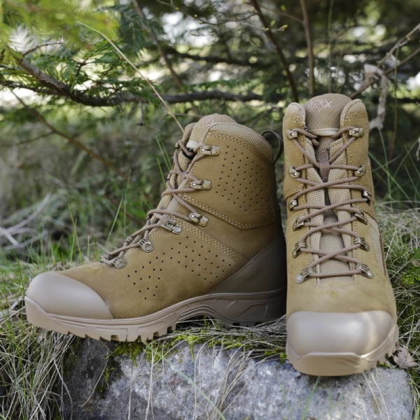 Buty od renomowanej firmy Haix wyprodukowane na potrzeby wojsk francuskich. Obuwie wykonano z bardzo dobrej jakości "oddychającej" skóry nubukowej. System Haix Clima zapewnia "pompowanie" świeżego powietrza do wewnątrz butów podczas każdego wykonanego ruchu stóp (wilgotne powietrze uwalnia się, natomiast świeże wpada przez otwory wentylacyjne w górnej części buta). Ponadto buty posiadają wyjmowaną, szybkoschnącą wkładkę absorbującą wilgoć, którą można prać. System szybkiego sznurowania zapewnia szybkie zakładanie, pozwala również na lepsze przystosowanie obuwia do stóp użytkownika. Podeszwa Vibram zapewnia świetną ochronę i stabilność w terenie, jest odporna na oleje, benzynę, wysoką temperaturę oraz posiada właściwości antypoślizgowe.