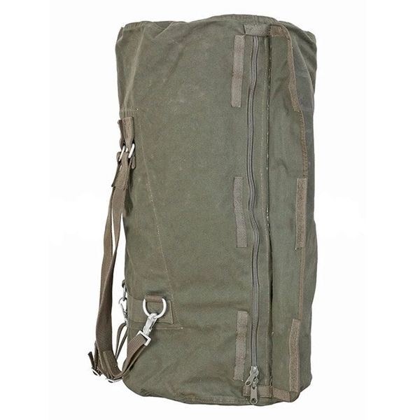 Original canvas bag from the stock of the German Bundeswehr. It is fastened with a zipper with the possibility of covering it with a fabric insert with Velcro. Equipped with suspenders so you can wear it like a backpack.