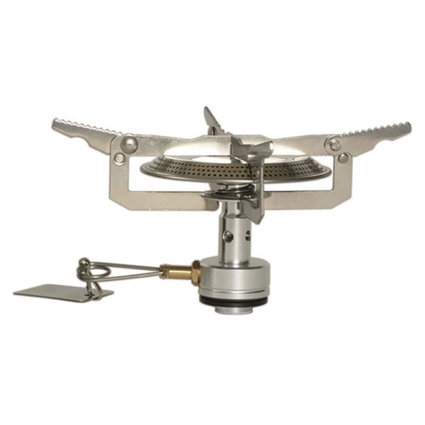 Stopki palnika zostały wyposażone w antypoślizgową strukturę, która zapewnia stabilne ustawienie garnka, zapobiegając jego przesuwaniu się podczas gotowania. Solidna konstrukcja gwarantuje równomierne rozprowadzanie ciepła, co pozwala na efektywne przygotowanie posiłków w terenie.
