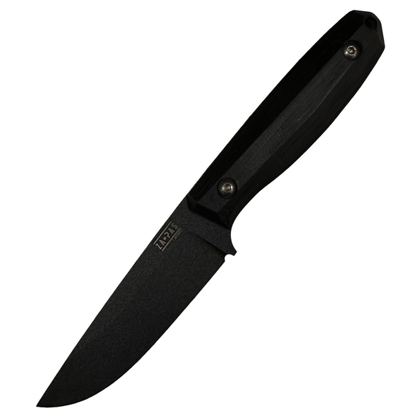Rękojeść noża została wykonana z trwałego kompozytu G10 w kolorze czarnym. Kompozyt G10 jest odporny na wilgoć, zmiany temperatury oraz większość rozpuszczalników i kwasów, co sprawia, że nóż jest wyjątkowo trwały i odporny na uszkodzenia mechaniczne. Okładziny rękojeści są przymocowane w konstrukcji full-tang, zapewniając wysoką stabilność i komfort użytkowania. Śruby nierdzewne użyte do montażu rękojeści gwarantują trwałość i odporność na korozję, co wydłuża żywotność narzędzia.