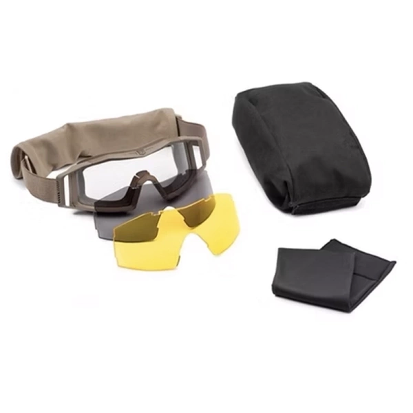 W komplecie trzy wymienne szybki balistyczne w wersji przezroczystej, przyciemnianej oraz żółtej. Umieszczone w oryginalnym pokrowcu w kolorze czarnym, który umożliwia noszenie gogli np. przy pasku.