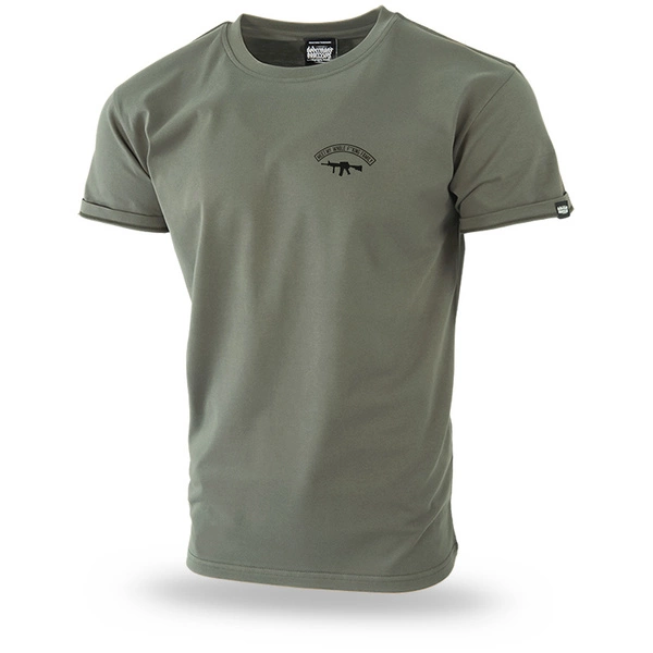 T-shirt wykonany z wysokogatunkowej bawełny. Z tyłu koszulki znajduje się nadruk z karabinami, które obrazują rodzinę, oraz małe logo marki Doberman’s. Na lewym rękawie wszyta została mała metka z logo marki.