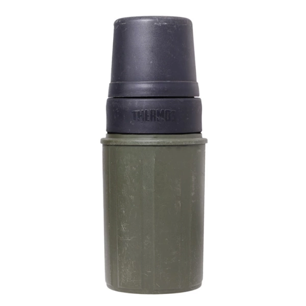 Oryginalny termos pochodzący z magazynów wojsk holenderskich. Jego pojemność wynosi 1 litr.