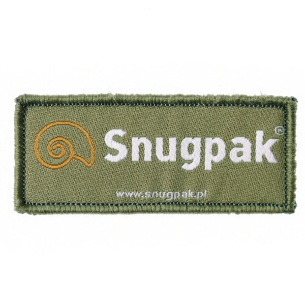Wszywka tkana – „SNUGPAK” wycinana laserem, podklejona rzepem i obszyta overlockiem.