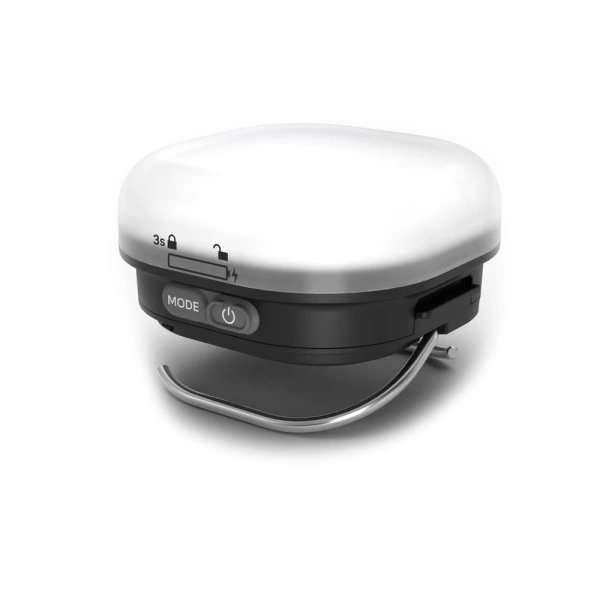 Latarka ma 3 poziomy jasności (min. 10 lm dla dłuższej pracy), podświetlane przyciski i tryb blokady. Podwójny haczyk umożliwia zawieszenie i regulację kąta świecenia.