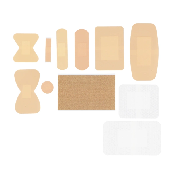 W skład zestawu wchodzi: 6 × plaster na opuszek (fingertip) 4,5 × 5,1 cm, 6 × plaster na palec (finger) 1 × 4 cm, 6 × plaster z opatrunkiem 1,9 × 7,2 cm, 12 × plaster z opatrunkiem 2,5 × 7,2 cm, 4 × plaster standardowy 5 × 7,6 cm, 4 × plaster standardowy 5 × 7,6 cm (drugi rodzaj), 4 × plaster prostokątny – 4,5 × 7,6 cm, 6 × plaster mały 2,2 × 2,2 cm, 10 × plaster elastyczny 10 × 6 cm, 1 × plaster z opatrunkiem 6 × 7 cm, 1 × plaster z opatrunkiem 6 × 10 cm.
