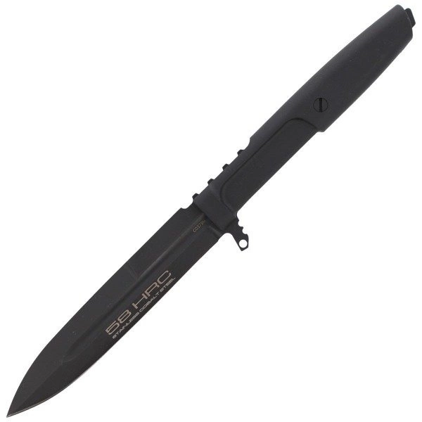 Stal N690 (wysokowęglowa 1.07% (C), martenzytyczna stal chromowa 17.30% (Cr) z dodatkiem molibdenu 1.10% (Mo), wanadu 0.10% (V) i kobaltu 1.50% (Co)) charakteryzuje się wyjątkowo wysoką odpornością na korozję i długim trzymaniem krawędzi. Stal N690 wytwarzana przez Böhler Edelstahl w Kapfenberg w Austrii to jedna z najlepszych obecnie stali narzędziowych na świecie. Uzyskuje twardość 58 HRC. Głownia Spear Point o grubości 4 mm ze zwiększającym właściwości przebijające fałszywym ostrzem wyposażona jest po obu stronach klingi w rowki zbrocza / wlewy drenażowe (blood-draining slot). Klingę pokryto polerowaną chemicznie, nierefleksyjną powłoką MIL-C-13924 BURNISHING. Ostrze gładkie Plain wyprowadzono szlifem płaskim (Flat grind) zapewniającym dobre właściwości tnące. Upper jimping długie teksturowane podparcie pod kciuk, a także single finger guard jednostronny jelec / karbowana osłona chroni dłoń przed zsunięciem się na ostrze.