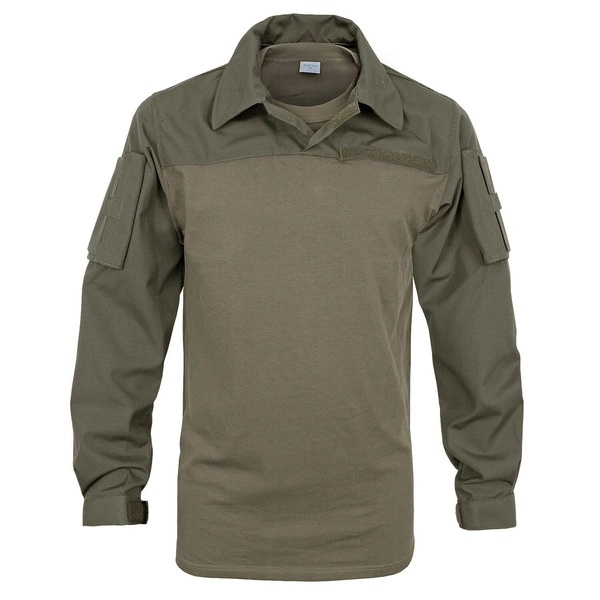 Wykonana z trudnopalnego, wodoodpornego materiału, łączy w sobie lekki, oddychający i odprowadzający wilgoć materiał w części tułowia z wyjątkowo wytrzymałą tkaniną na ramionach i rękawach. Dzięki prostemu krojowi oraz przemyślanym detalom, takim jak regulowane mankiety na rzepy, kołnierz z zapięciem na rzep oraz miękki, zaokrąglony dekolt, zapewnia idealne dopasowanie i swobodę ruchu. Dodatkowe funkcje, takie jak kieszenie na ramionach z dużymi panelami rzepowymi, miejsca na naszywki oraz emblematy na rękawach, sprawiają, że koszula ta doskonale sprawdza się w służbie i podczas szkoleń.
