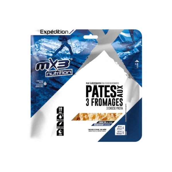Połączenie francuskich i szwajcarskich serów: Ementalera, Comte oraz Cantala w kremowym sosie tworzy prawdziwą ucztę dla podniebienia, idealną na długie wyprawy, trekking czy intensywne treningi. Porcja powiększona, o wysokiej wartości energetycznej, zaspokoi potrzeby osób aktywnych fizycznie, a przy mniejszym apetycie może posłużyć jako obiad dla dwóch osób.