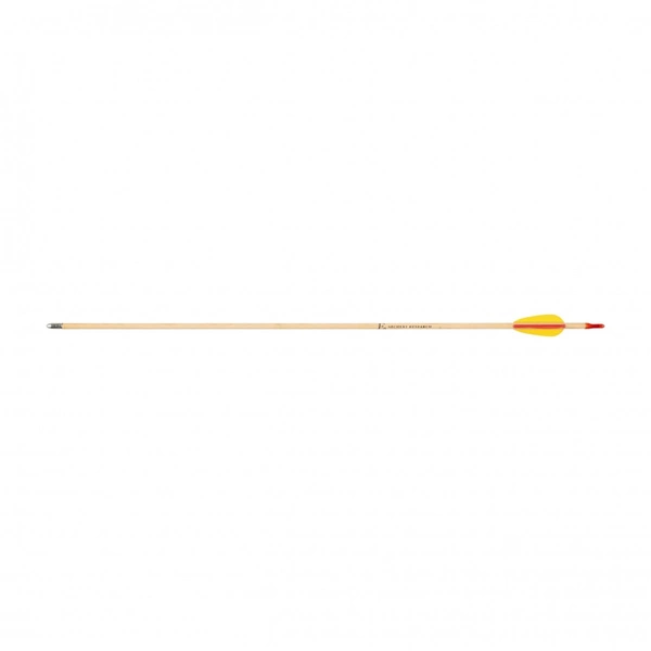 This arrow is designed for recreational archery and is dedicated to traditional bows. Made from selected wood, it is equipped with a steel field tip. The arrow features flexible fletching made of rubber-plastic, which ensures a stable flight track even at longer distances. The plastic "nock" insert allows for a secure and safe placement of the arrow on the bowstring.