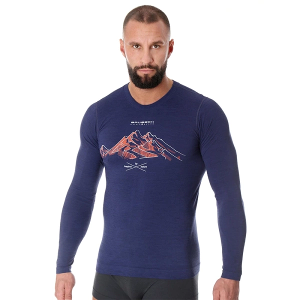 Men's Long Sleeve Shirt Merino Outdoor Wool Pro Brubeck Dark Blue