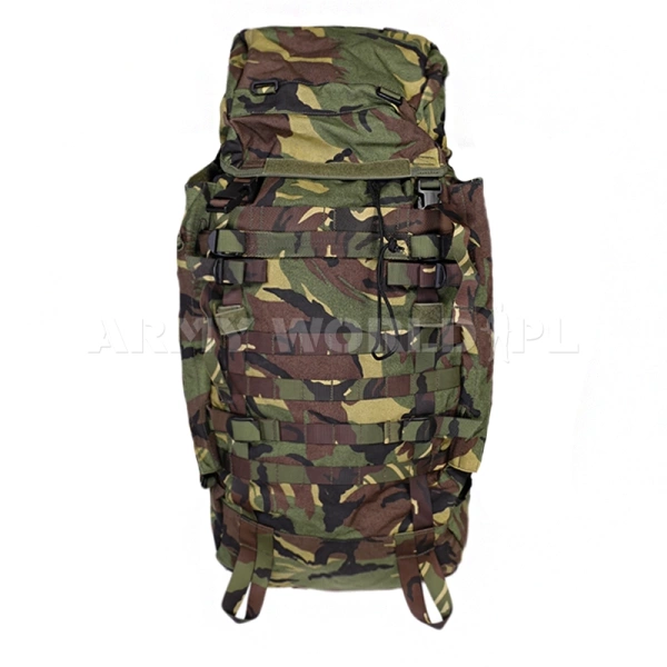 Oryginalny plecak o pojemności 80 litrów w kamuflażu DPM pochodzący z zasobów wojsk holenderskich wyprodukowany przez renomowaną firmę Lowe Alpine.