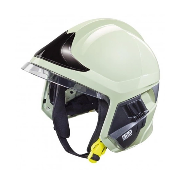 Wytrzymała konstrukcja zapewniała bezpieczeństwo. Materiał jest odporny na promieniowanie cieplne i płomienie. Kask zapewnia bardzo dobre dopasowanie. Ergonomiczny, zoptymalizowany pasek podbródkowy ułatwia dopasowanie do użytkownika.