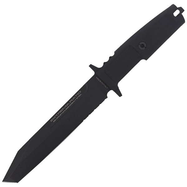 Ostrze częściowo ząbkowane Combo wyprowadzono szlifem wklęsłym (Flat grind). Spine jimping teksturowana rampa pod kciuk, a także double finger guard obustronny jelec i karbowana osłona chronią dłoń przed zsunięciem się na ostrze. Combo Edge (częściowe ząbkowanie) stosowane jest w nożach taktycznych, ratowniczych oraz survivalowych. Składa się naprzemiennie z jednego dużego oraz dwóch małych zębów, wzór ten zwiększa długość krawędzi cięcia nawet o 24% w stosunku do ostrza prostego. Idealne do cięcia twardych materiałów, tworzyw sztucznych oraz włóknistych. Ponadto klingę pokryto polerowaną chemicznie, nierefleksyjną powłoką MIL-C-13924 BURNISHING.