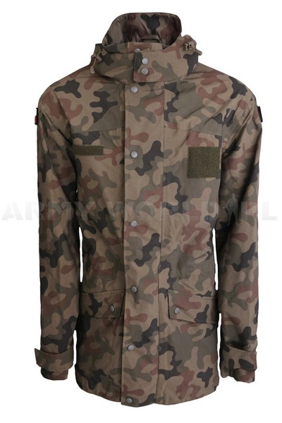 Kurtka ochronna pochodząca z zasobów wojska polskiego. Wykonana z wysokiej jakości materiałów wzmocnionych wodoodporną i oddychającą membraną w składzie 100% PTFE. Kurtka posiada łącznie 4 kieszenie zapinane za pomocą zamka błyskawicznego: dwie na wysokości bioder z dodatkową materiałową klapką zabezpieczającą przed dostaniem się wody do ich wnętrza oraz dwie na wysokości piersi do których wejście umiejscowione jest tuż obok zamka głównego. Na ramionach znajdują się emblematy z flagą polski, pozostałe dwa umieszczone są na wysokości piersi. W pasie, u dołu oraz przy mankietach znajdują się dodatkowe ściągacze umożliwiające dokładne dopasowanie kurtki. Kurtka może niekiedy nie posiadać kaptura, który jest odpinany.