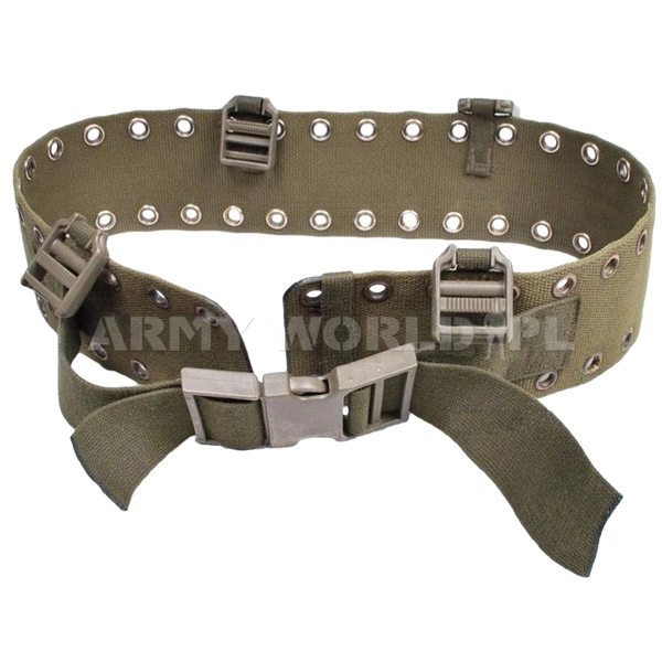 Pas zapinany jest za pomocą plastikowej klamry typu fastex. Można przypiąć do niego ładownicę, pokrowiec na saperkę oraz pokrowiec na chlebak.
