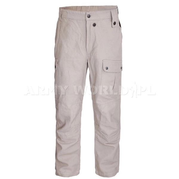 Wykonane z wysokiej jakości materiału o składzie 50% poliester, 50% bawełna lub 100% bawełna. Spodnie posiadają łącznie 7 kieszeni: dwie standardowe biodrowe, dwie na pośladkach oraz trzy cargo w okolicy ud, wszystkie kieszenie zapinane są za pomocą zatrzasków. Na kolanach wzmocniono produkt podwójną warstwą materiału, dzięki czemu spodnie są odporniejsze na ścieranie i przetarcia. Obwód spodni można swobodnie regulować za pomocą rzepu w pasie, a zapięcie na zamek błyskawiczny oraz guziki zapewnia wygodę oraz komfort.