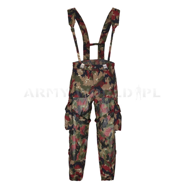 Spodnie wojskowe pochodzące z zasobów wojsk szwajcarskich. Wykonane z wysokiej jakości bawełny w bardzo ciekawym kamuflażu, który idealnie maskuje w porze jesiennej.