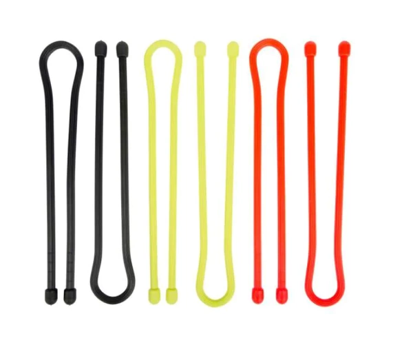 Zestaw zawiera: 2 x Gear Tie 18" w kolorze czarnym 2 x Gear Tie 18" w kolorze intensywnym jasnożółtym (Neon Yellow) 2 x Gear Tie 18" w kolorze jasnopomarańczowym (Bright Orange).