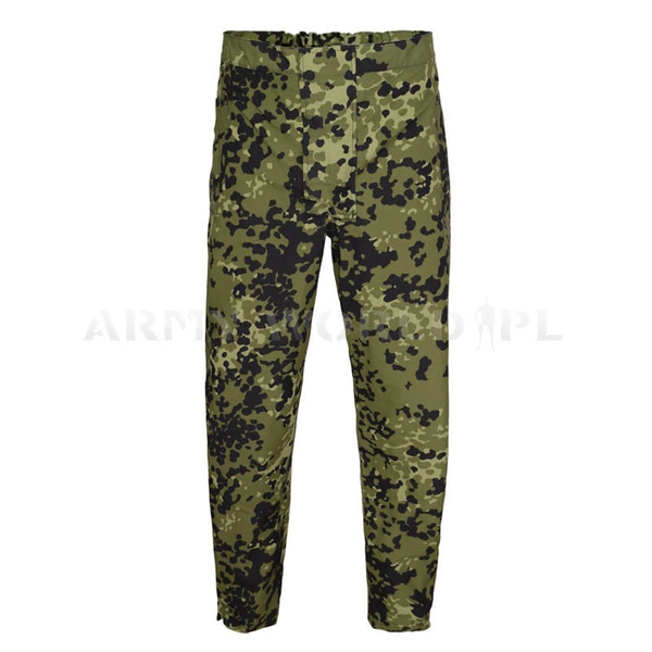 Spodnie przeciwdeszczowe pochodzące z zasobów magazynów wojsk duńskich. Odzież wykonano z wysokiej jakości materiału z zastosowaniem membrany, która zapewnia ochronę przed deszczem i wiatrem z odprowadzeniem wilgoci na zewnątrz. Wszystkie szwy są dodatkowo podklejone co zapewnia 100% wodoodporność.