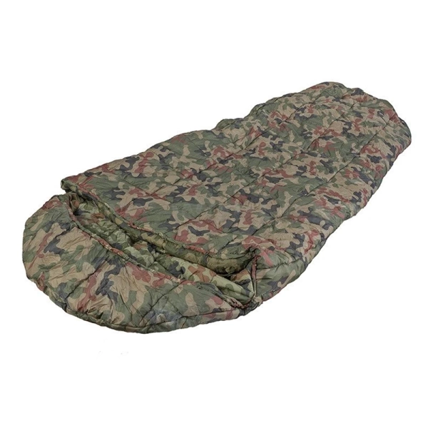 Oryginalny śpiwór wojskowy we wzorze 729/MON pododdziałów specjalnych pochodzący z zasobów wojska polskiego. Zapinany za pomocą dwustronnego zamka błyskawicznego. Wykonany jest ze specjalnej, wodoodpornej i wiatroszczelnej tkaniny poliamidowej w kamuflażu wz. 93. Śpiwór zamykany jest na dwustronny zamek, który pozwala regulować temperaturę i wentylację wewnątrz śpiwora. Dwuwarstwowa konstrukcja zapewnia utrzymanie ciepła nawet w niskich temperaturach. Wewnątrz znajduje się, kieszeń, zapinana na rzep. Zamek kryty jest specjalną listwą termiczną. Górna część śpiwora wyposażona jest w ocieplony kaptur z możliwością regulacji (ściągacz).