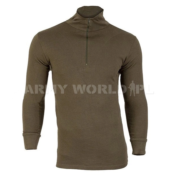 Oryginalny trikot pochodzący z zasobów wojsk niemieckich Bundeswehr. Wykonany z wysokiej jakości bawełny. Wyposażony w ściągacze przy rękawach oraz kołnierz z zamkiem.