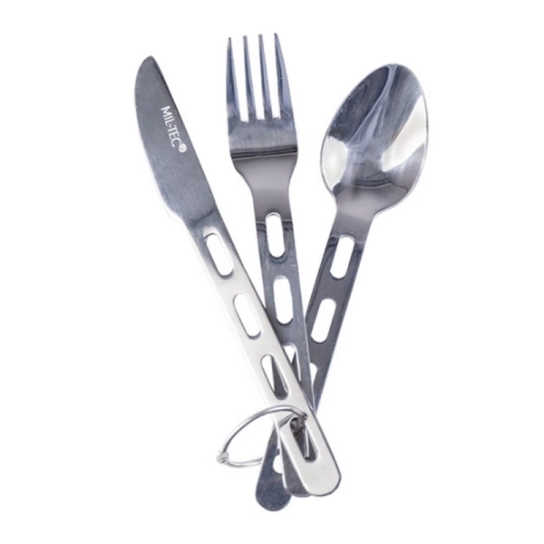 W skład zestawu wchodzą trzy podstawowe elementy: nóż, widelec oraz łyżka. Dzięki kompaktowej konstrukcji i niewielkiej wadze, niezbędnik jest wygodny do przenoszenia i idealnie sprawdzi się podczas kempingu, wędrówek czy wojskowych wypraw.