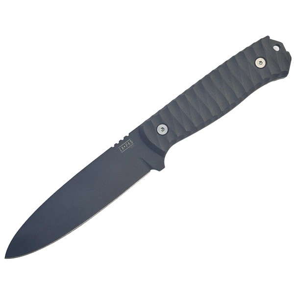 Rękojeść noża wykonana jest z kompozytu G10, materiału znanego z wysokiej odporności na wilgoć, zmiany temperatury oraz większość rozpuszczalników i kwasów. Dzięki temu nóż jest nie tylko trwały, ale także odporny na uszkodzenia mechaniczne. Okładziny rękojeści są przymocowane w konstrukcji full-tang, co zapewnia dodatkową stabilność i wytrzymałość narzędzia. Śruby przykręcające okładki są czarne, co dodaje nożowi estetycznego wykończenia.