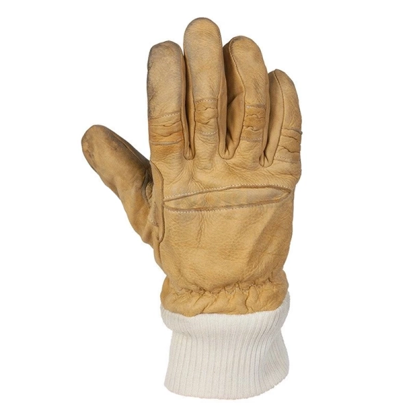 Oryginalne rękawiczki strażackie, pochodzące z zasobów magazynowych wojsk holenderskich. Wykonane ze skóry naturalnej i materiałów trudnopalnych. Zapewniają ochronę przed wysoką temperaturą. Rękawice spełniają wymagania normy EN 659.