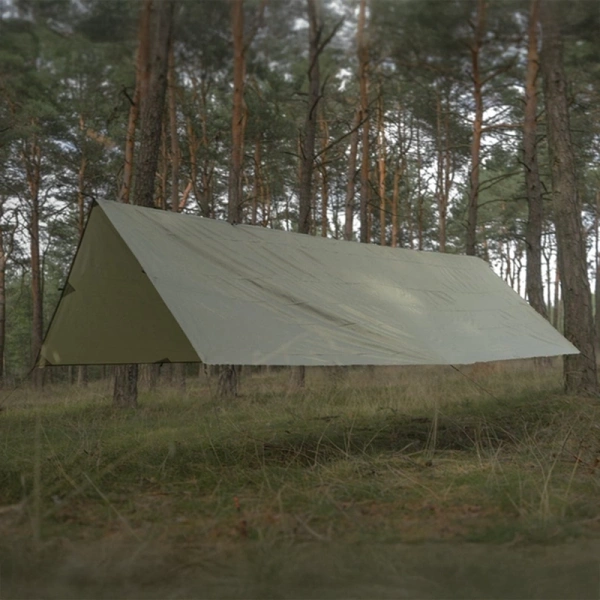 Uniwersalna płachta biwakowa wyprodukowana przez firmę TigerWood. Idealna do budowy schronień w terenie. Tarp jest wykonany z lekkiego, wytrzymałego oraz wodoodpornego materiału. Podklejane szwy oraz punkty montażowe zapewniają wysoką wytrzymałość. Wzmocnione zaczepy umożliwiają w kilka chwil zmianę konstrukcji płachty w dwuspadowy namiot, improwizowane tipi czy rozłożysty dach, pod którym będzie toczyć się obozowe życie.