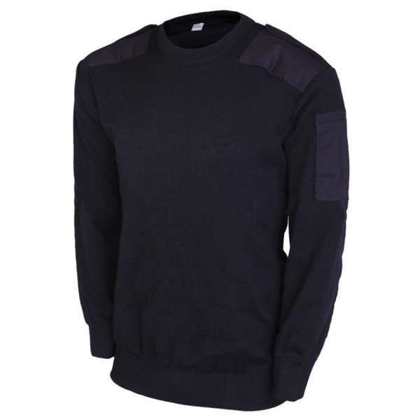 Na ramionach posiada pagony oraz wzmocnienia materiału umieszczone również na łokciach oraz czasami na przedramieniu (wysyłamy losowo). Sweter u dołu oraz przy mankietach posiada ściągacze. Produkt doskonale nada się pod każdą kurtkę jako dodatkowe ocieplenie.