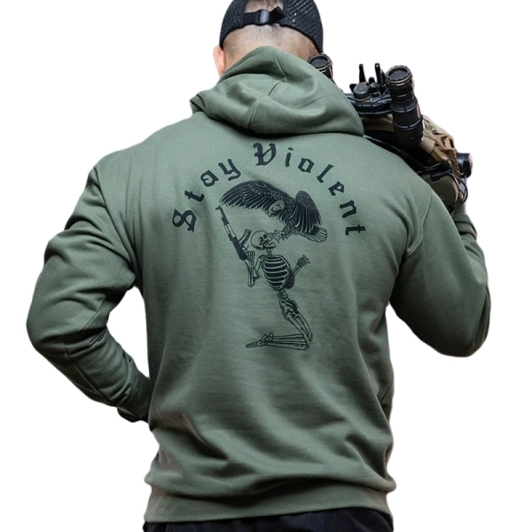 Ta bluza oznacza siłę, gotowość i brutalną prawdę: jedynym sposobem na powstrzymanie brutalnych złych ludzi są brutalni dobrzy ludzie. Stay Violent Hoodie to manifest dla tych, którzy nie boją się przemocy – bo ją rozumieją, opanowali i potrafią użyć jej w obronie tego, co najważniejsze. Słabi mężczyźni boją się przemocy. Silni uczynili z niej narzędzie.