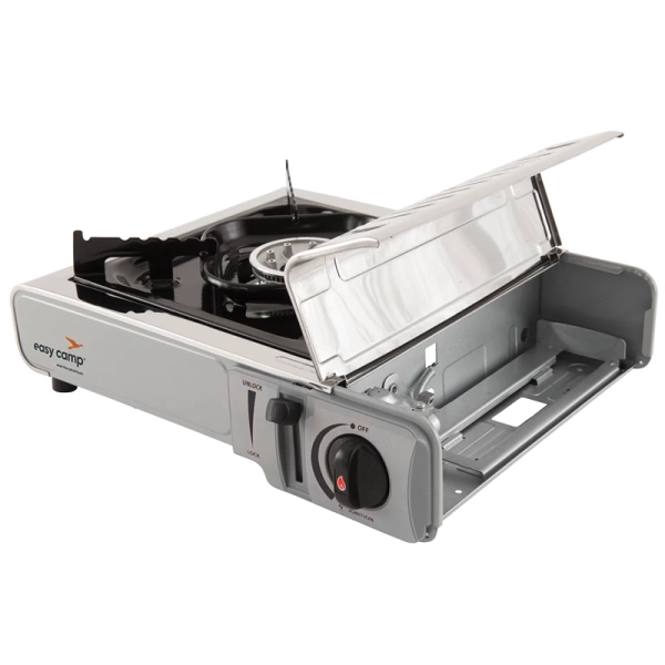 Kuchenka charakteryzuje się automatycznym zapłonem piezoelektrycznym, co zapewnia łatwość użytkowania w terenie. Kuchenka kempingowa Easy Camp Tour Stove wykonana jest z połączenia wytrzymałej stali oraz stali nierdzewnej, co podnosi jej trwałość. Moc palnika wynosi 2200 W, co umożliwia szybkie gotowanie potraw. Konsumpcja gazu wynosi 160 gramów na godzinę, co czyni ją efektywnym rozwiązaniem na kempingowe wyjazdy.