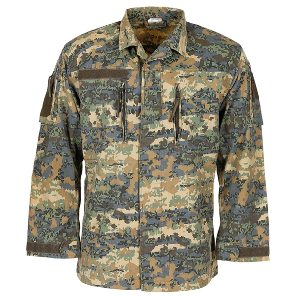 Bluza z materiału typu ripstop pochodząca z austriackich zasobów magazynowych. Odzież zapinana jest za pomocą guzików, zakrywanych materiałową klapą.