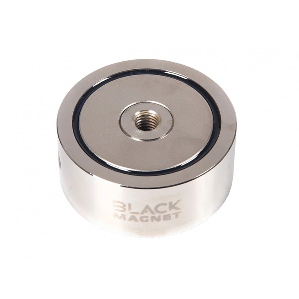 Magnes neodymowy Black Magnet F120×2 to podwójny magnes o udźwigu 2x120 kg, idealny do podwodnej eksploracji, oczyszczania zbiorników wodnych oraz odzyskiwania metalowych przedmiotów z dna. Dzięki wyjątkowej sile przyciągania, Black Magnet F120×2 umożliwia skuteczne łowienie magnesem, które jest świetną alternatywą dla tradycyjnych poszukiwań z detektorem metali. Magnes jest odporny na korozję dzięki powłoce antykorozyjnej, co czyni go idealnym do pracy w wodzie.