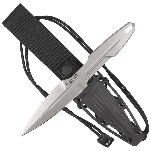 Nóż Ratio S-THIL od firmy Extrema Ratio to taktyczny nóż zapasowy o monolitycznej konstrukcji, wykonany z jednego kawałka stali o grubości 5 mm, zaprojektowany we współpracy z Thilo Arnd Schillerem. Głownia typu spear point z fałszywym ostrzem i hartowaniem do twardości 58 HRC zapewnia znakomitą równowagę między trwałością krawędzi a odpornością na uszkodzenia. Płynnie poprowadzony zbrocz od ostrza aż po rękojeść nadaje nożowi lekkości i elegancji, a jednocześnie wzmacnia jego konstrukcję.