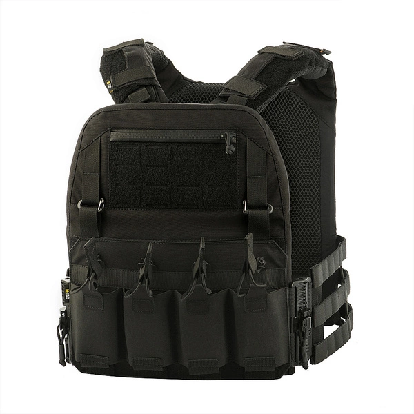 Na froncie produktu znajduje się panel z rzepem ze szczeliną, który można wykorzystać do mocowania sprzętu i identyfikatorów zgodnych z systemem Molle. W górnej części Plate Carriera projektanci marki M-Tac przewidzieli małą komorę administracyjną z odpornym na wilgoć zamkiem błyskawicznym AquaGuard. Ta kieszeń jest przeznaczona do przechowywania małych płaskich przedmiotów, takich jak dowody osobiste, klucze, zapalniczka i inne przedmioty.