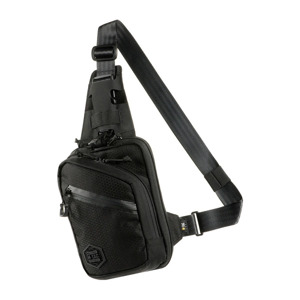 Sling Pistol Bag posiada 4 przestronne komory i regulowany pas na ramię z szybkozłączką. Panel ochronny wykonany z poliuretanu wzmocnionego włóknami nylonowymi, ukrywa klamrę fastex i zapobiega przypadkowemu otwarciu. Przednia komora dodatkowo wyposażona jest w organizery oraz siateczkową kieszeń na zestaw EDC. Dzięki swojemu kształtowi, torba wygodnie układa się na tułowiu i nie zajmuje dużo miejsca.