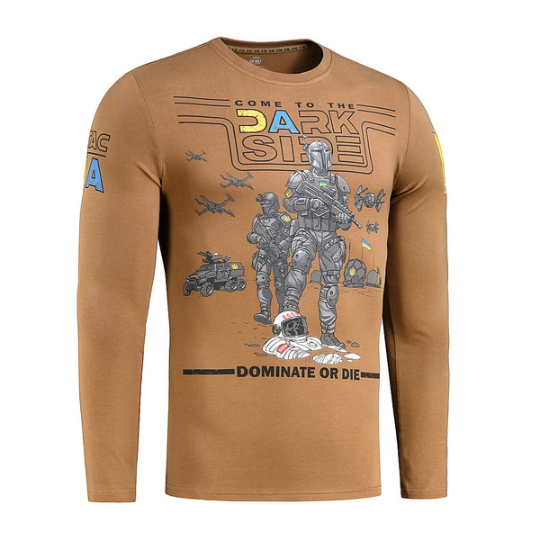 W głównej części nadruku na piersi znajduje się napis „Przejdź na ciemną stronę”, a poniżej „dominuj lub zgiń” z oryginalnym wizerunkiem ukraińskich kosmonautów z bronią stojących na zwłokach radzieckich wrogów. Na rękawach z jednej strony widnieje piękne logo "M-Tac UA", a z drugiej herb Ukrainy, na którym widać wojownika "Dark Side".