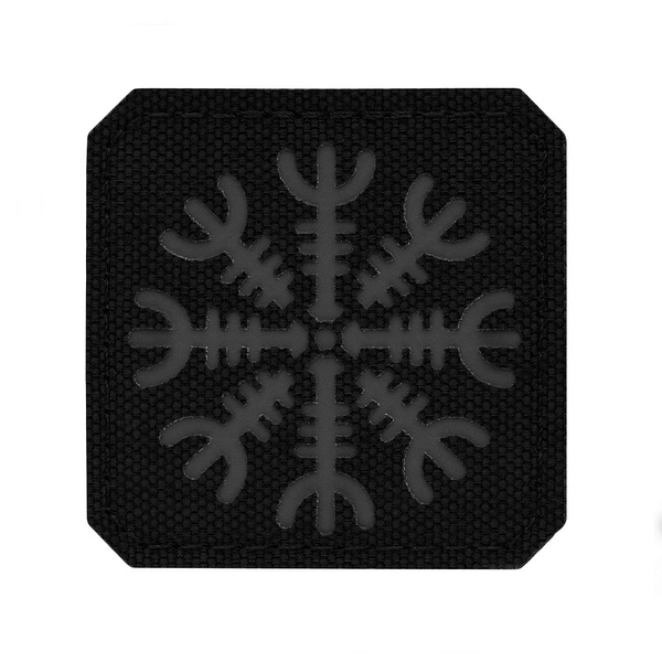 Naszywka Hełm Grozy firmy M-Tac przedstawia Aegishjalmur, islandzki znak magiczny wycinany laserowo, symbolizujący ochronę przed wrogiem i wywołujący strach u przeciwnika.