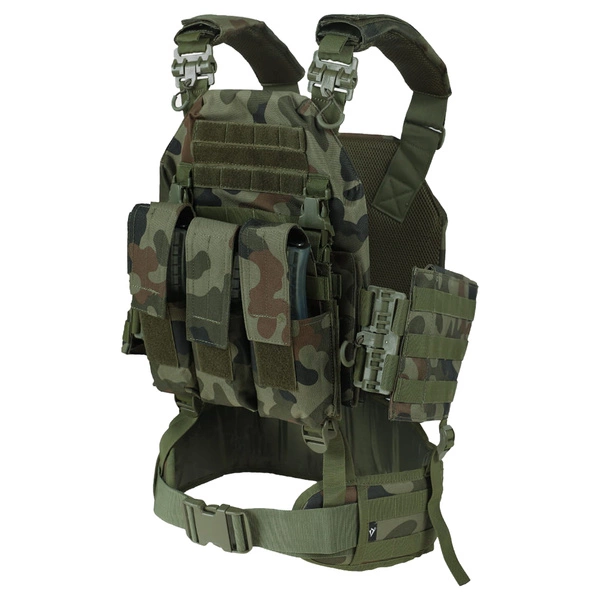 Kamizelka taktyczna Buckle Up Kirasjer Dominator® to solidna, funkcjonalna i w pełni konfigurowalna platforma nośna, idealna do zastosowań militarnych, taktycznych oraz sportowych – zarówno w warunkach bojowych, jak i na polu treningowym.