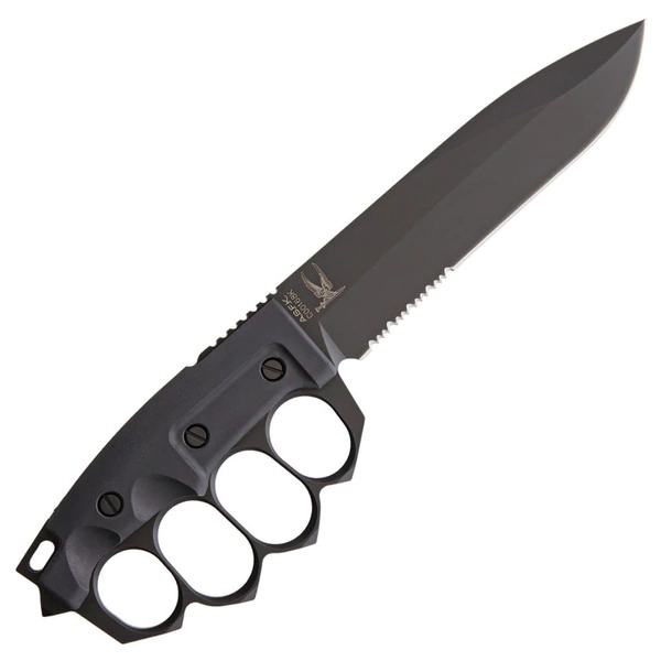 Nożowi towarzyszy pochwa z pustynnej Cordury, kompatybilna z MOLLE, umożliwiająca wygodne noszenie na pasie lub jako opcjonalne noszenie pod pachą . Konstrukcja typu hidden tang oraz pełny trzon (full tang) z wydłużeniem pełniącym funkcję tłuczka podkreślają solidne wykonanie i przemyślane zastosowanie w warunkach bojowych