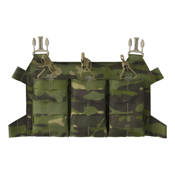 Montaż klapy do plate carrierów odbywa się za pomocą górnych klamer, co zapewnia szybki i stabilny montaż. Co więcej, klapa może być łatwo przekształcona w kompaktowy chest rig przy użyciu dodatkowego interfejsu (dostępnego jako osobny produkt), co czyni ją jeszcze bardziej uniwersalnym elementem wyposażenia.