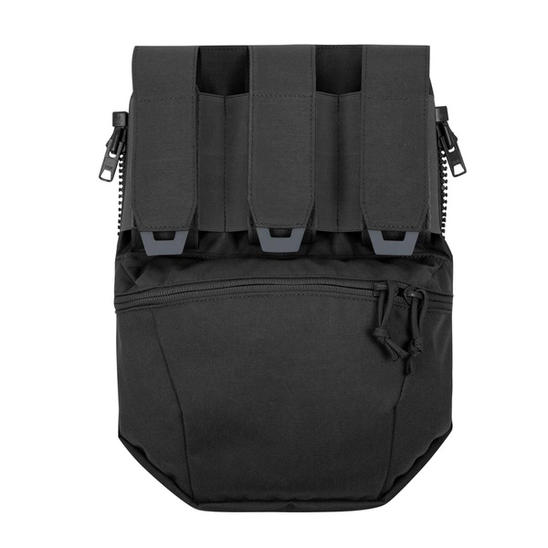 Panel posiada trzy górne kieszenie na rzep, przeznaczone na granaty hukowe lub magazynki. Pod nimi znajduje się pojemna kieszeń cargo z welurowym wnętrzem, idealna do przenoszenia delikatnego sprzętu, np. gogli lub optyki.